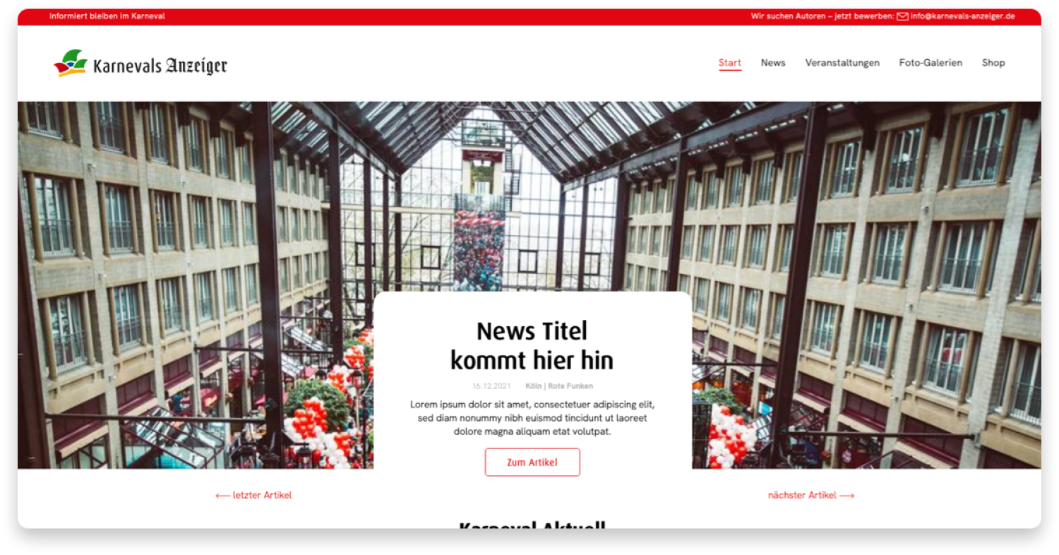Der Karnevalsanzeiger ist eine Plattform für Karnevalsvereine, um aktuelle Informationen zum Verein, verschiedenartige Aufrufe oder ihre eigenen Veranstaltungen zu teilen. Als Nutzer von JeckDesk werden Ihre Inhalte kostenfrei auf der Plattform veröffentlicht und Sie erhalten so eine höhere Sichtbarkeit und die Chance auf ganz neue Käufergruppen für Ihre Tickets und Produkte.